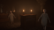 - Another location revisited from RE2 Remake but it's way more effective here. You barely spend 10 minutes in RE2make here and see nothing of the horrors that are shown here. The creepy kids are very unsettling and the scene where you have to hide under the beds is intense.
