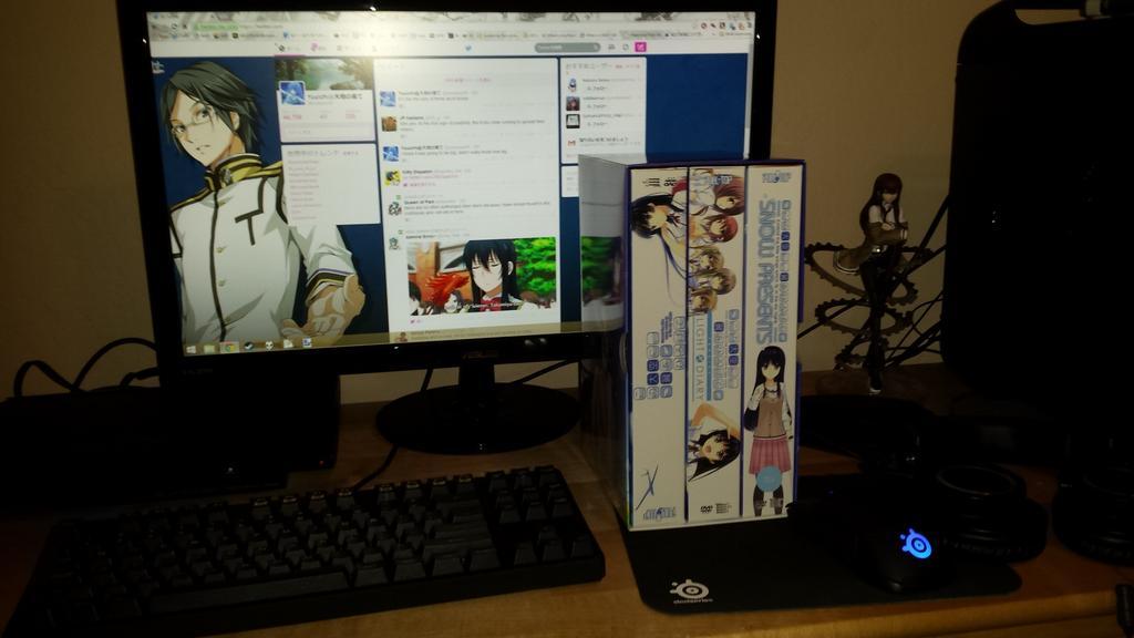 First off is Konosora, which came in the other day following a really not fun USPS hell (long story). you can revel in some bad pictures here and here. It's massive, I'm shocked I have shelf space. It's quite enjoyable so far, though I can't comment on the enligsh version because I'm not playing it. I don't believe in censorship and have mild worries about translation qualities, but that's about it. It's worth checking out, at the very least.