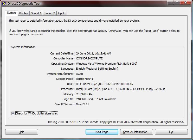 Depends what you are upgrading your PC for. For starters, it seem you are are using nvidia drivers from 3 years ago.Spiffy_1st said:I haven't got loads of money to blow on a PC, but I've got enough to improve on my current one. Would it make more sense to upgrade the one I already have, or just buy a whole new one? I'm not PC savy when it comes to specs and stuff (I hope to change that soon), so I'm not sure if what I've got is worth anything or not.