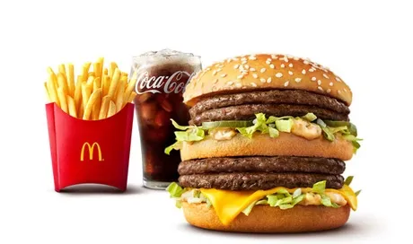 The kicker for all this was that the food was incredibly cheap. The Big Mac meal with fries and a drink was ¥750, approximately $5 USD. Granted, their "large" is about the size of a US small or medium, but the burger was the same size. The beef patties were not paper thin. The ingredients were all mostly sourced domestically in Japan. Most of the chemicals used in the food in the US are banned there. After 5PM they start their menu where you can get "double meat" on any sandwich for only a little extra. The 倍ビッグマック セット (double big mac meal) was ¥950, or about $6.50 USD and looks like this