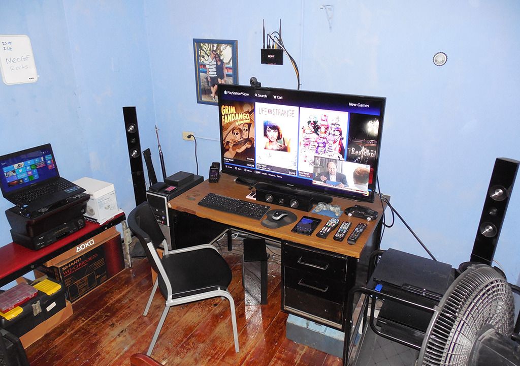 From the left Sony HMZ-T1, Xbox One, AOC 27' 1080p IPS 3D monitor and in the right low corner my gaming PC(i7 4770k,8GB ram, r9 290 OC)