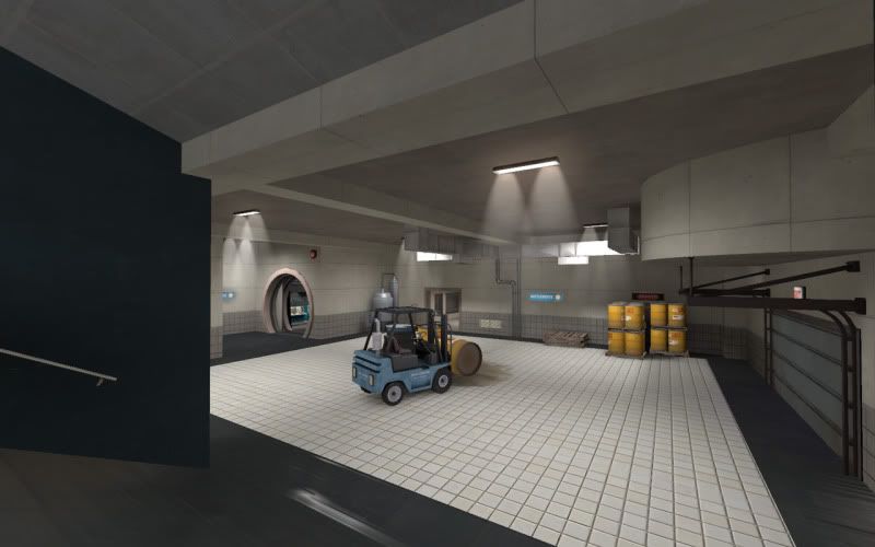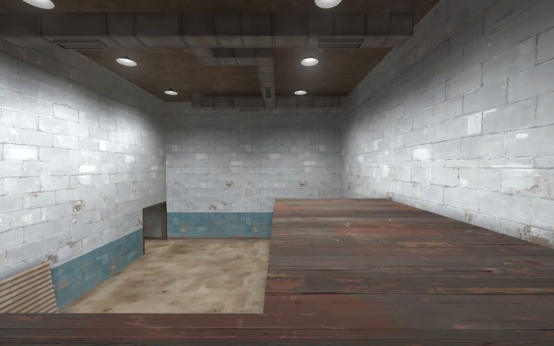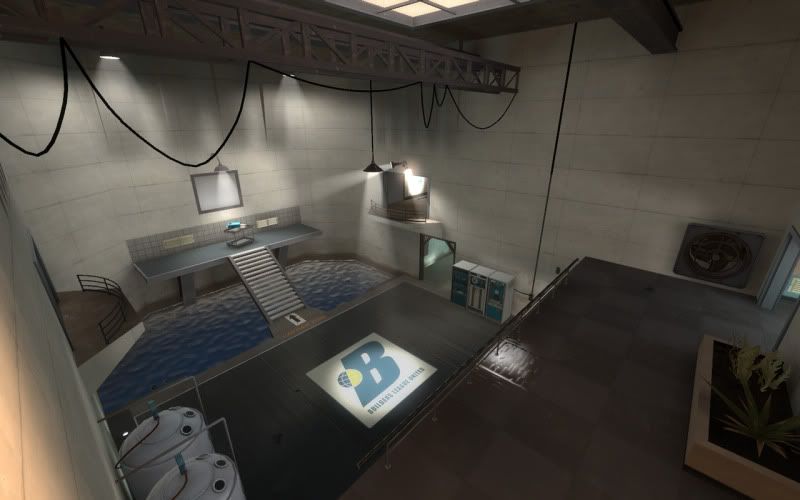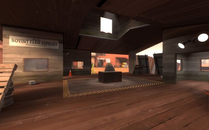 There is so much detail and care in this map its scary. Each room has something interesting to look at, from wooden cow storage to furnaces to broken windows and opened air ducts. There's a definite atmosphere about the place and unfortunately it's somewhat schizophrenic. The inside feels like this crazy facility like in Jurassic Park, and yet the outside is this weird sort of farm/lumberyard/mexico thing going on.